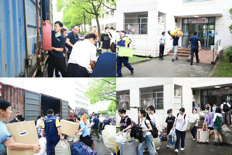 6月20日清晨六点,客车和货车分别在南操和宿舍楼下等候,同学们出发在即。在此过程中,辅导员老师们组织协调,园区、后勤服务中心等部门的叔叔阿姨们帮忙搬运,同学们也自力更生,搬运自己的行李。在大家的共同努力下,行李很快就被运送至货车厢内。随着同学们陆续坐上客车,奉贤校区的搬迁工作也接近尾声。