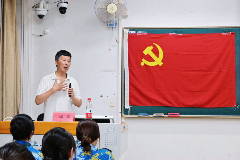 邵雍教授以陈独秀、李大钊、毛泽东等伟人的亲历故事将建党的光辉历程娓娓道来。邵教授的讲座分为两部分,第一部分围绕毛泽东的建党精神主要讲了三点:“践行初心、担当使命的一代伟人”,“不怕牺牲、英勇斗争的光辉典范”,“对党忠诚、不负人民的伟大领袖”。第二部分用四个关键词概况了毛泽东这一伟人的历史地位,他是“伟大的马克思主义者”;是“敢于担当的党和国家的主要领导人”;是“大无畏的无产阶级革命家”;也是“人民的总服务员”。