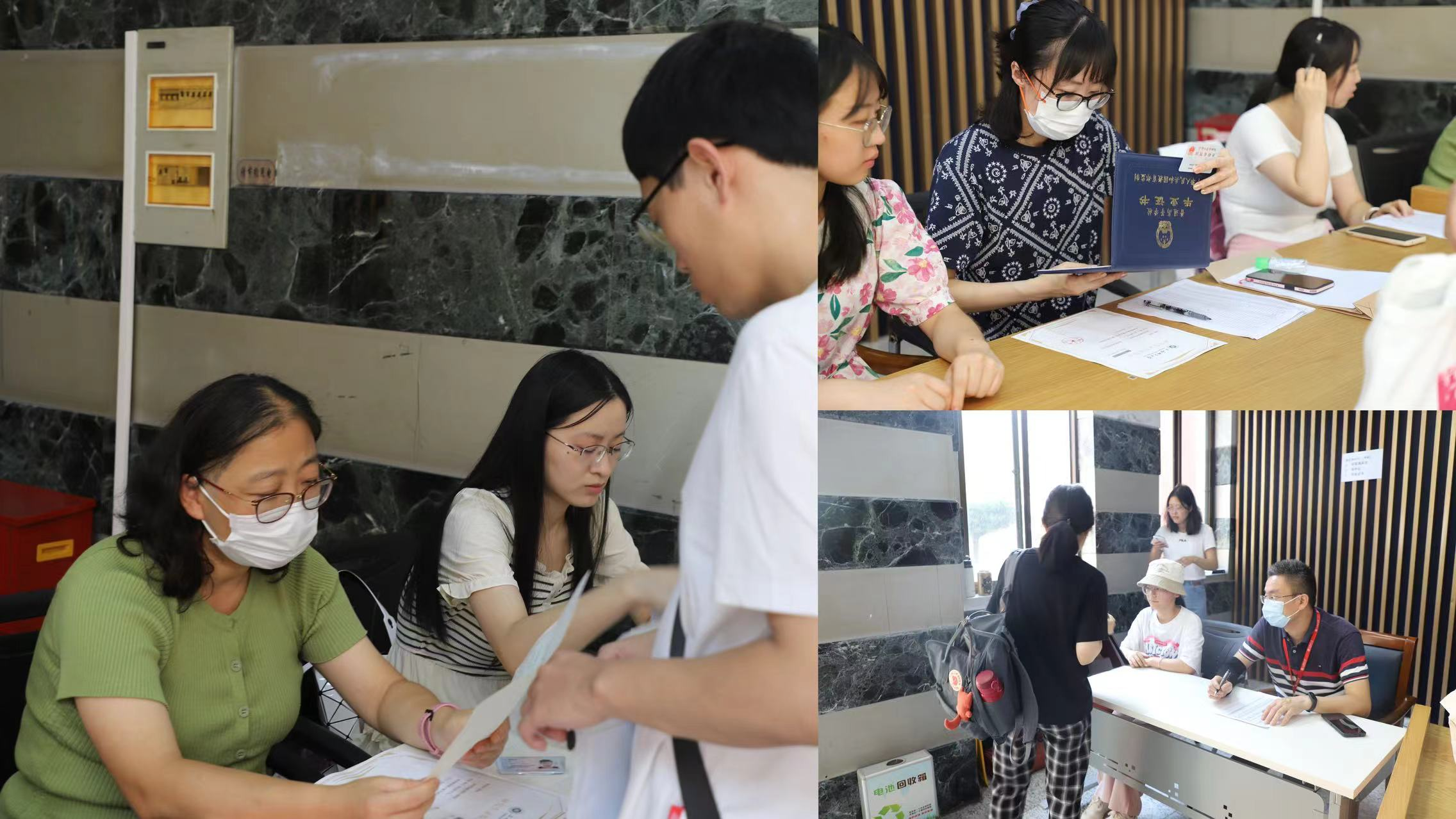 为确保研究生招生工作的顺利有序进行,公司于东部文苑楼一楼开展报到验证工作,教务老师和志愿者认真核验新生身份证、录取通知书以及毕业证书等材料。
