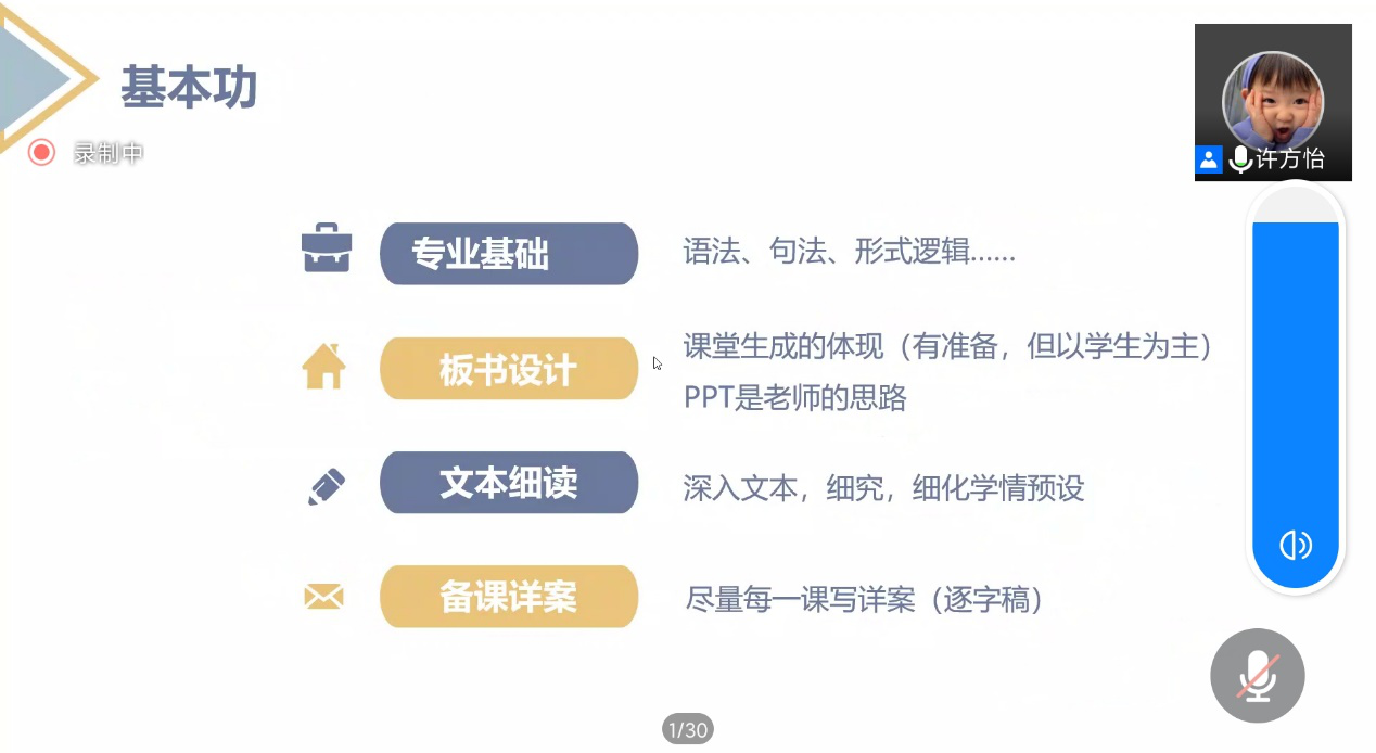 许方怡与大家分享了民办学校的求职及工作经验,细心梳理了民办与公办的差异所在。她强调了个人教学能力、控班能力的重要性,鼓励大家提升自己的教学基本功,夯实专业基础、板书设计、文本细读以及备课能力等等。除此之外,她也为同学们分析了日后教学与行政两个方向的路径规划,鼓励大家在工作过程中会遇到很多困难、困倦、困惑,但这都会成为自己日后的经验和财富,教学相长。