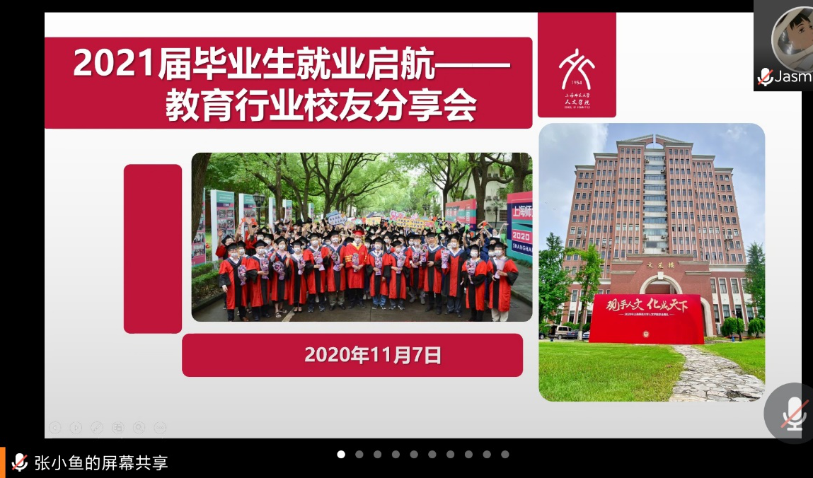 2020年11月7日下午,ok138cn太阳集团529“2021届毕业生就业启航——教育行业员工分享会”在腾讯会议举行。本次分享会由2017级辅导员张玲主持,2020届学科教学(语文)专业毕业生、上海进才中学北校语文老师宋一帆,2020届学科教学(历史)专业毕业生、松江七中历史老师岳增帅与2017届世界文学与比较文学专业毕业生、上海市世界外国语中学语文老师许方怡参与分享。