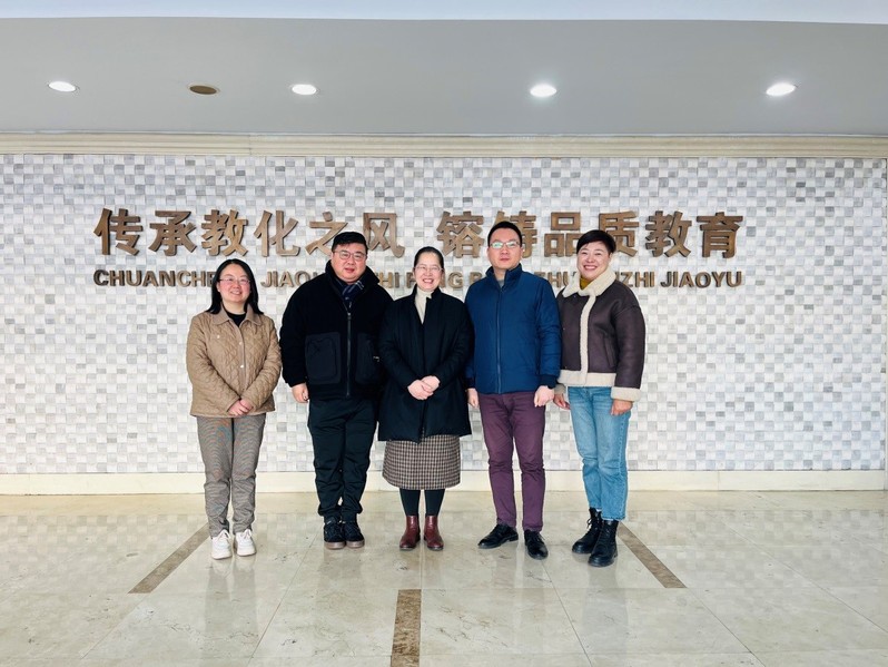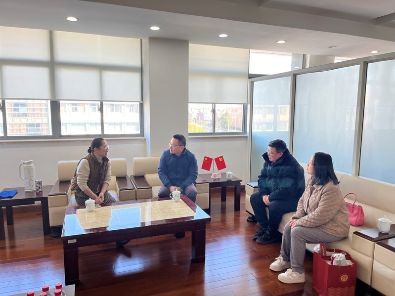 1月23日上午,太阳成集团官方网站公司党委书记潘黎勇、太阳成集团官方网站附属第五嘉定实验学校董事长陈勇、公司党委副书记、副经理陈重来以及员工会基金会秘书处张婧一行走访了上海技术师范学院中文系87级员工、嘉定区教育局局长管文洁。