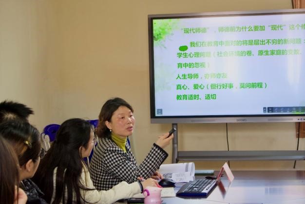 龚永娟结合当代基础教育趋势,提出教师在教学上应“多学习、多上课、多弯腰”,不断提升专业素养,适应当代教学的育人模式,如统编教材更注重大单元教学,员工获取信息的渠道增多,教师本身拥有扎实过硬的基本功愈显重要。另外她还解析了“教育”中的“育”,认为老师对员工要做到“真心、适时、适切”的教育,在“全员导师制”的前提下提升教师的“现代师德”,能解决一些新问题,如员工心理问题等。