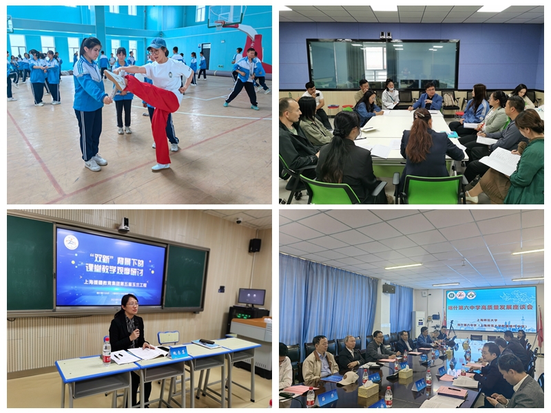综合指导期间,针对附属喀什中学对语文、体育、音乐、生物、智慧教育等的发展需求,上海师大基础教育处组建了特级董事长杨泰山、语文正高级特级教师鲍志慧(嘉善县上师实验学校总董事长)、数学正高级特级教师赵玉梅(附属临港中学董事长)、生物资深教研员许琼老师、体育学院经理薛原教授、音乐学院经理施忠教授、体育学院杨文芳副教授、外国语学院吕晓红副教授、信息机电学院季隽副教授等专家团,对语文、数学、英语、音乐、体育等学科进行推门听课、评课、研课十余节,并指导教研组开展教研活动。基础教育处专家钱源伟教授、郭长江副教授、周燕菊老师、陆超博士等与附属喀什中学校领导和中层干部团队以及上海赴喀什援疆教师团队进行了多场座谈会,就学校团队配备、教师进修与培训、帮困助学、党建引领、基础教育资源优化部署等重要问题进行了深度的交流研讨。专家团还现场考察了附属喀什中学新校区的建设情况,为校区搬迁献计献策。