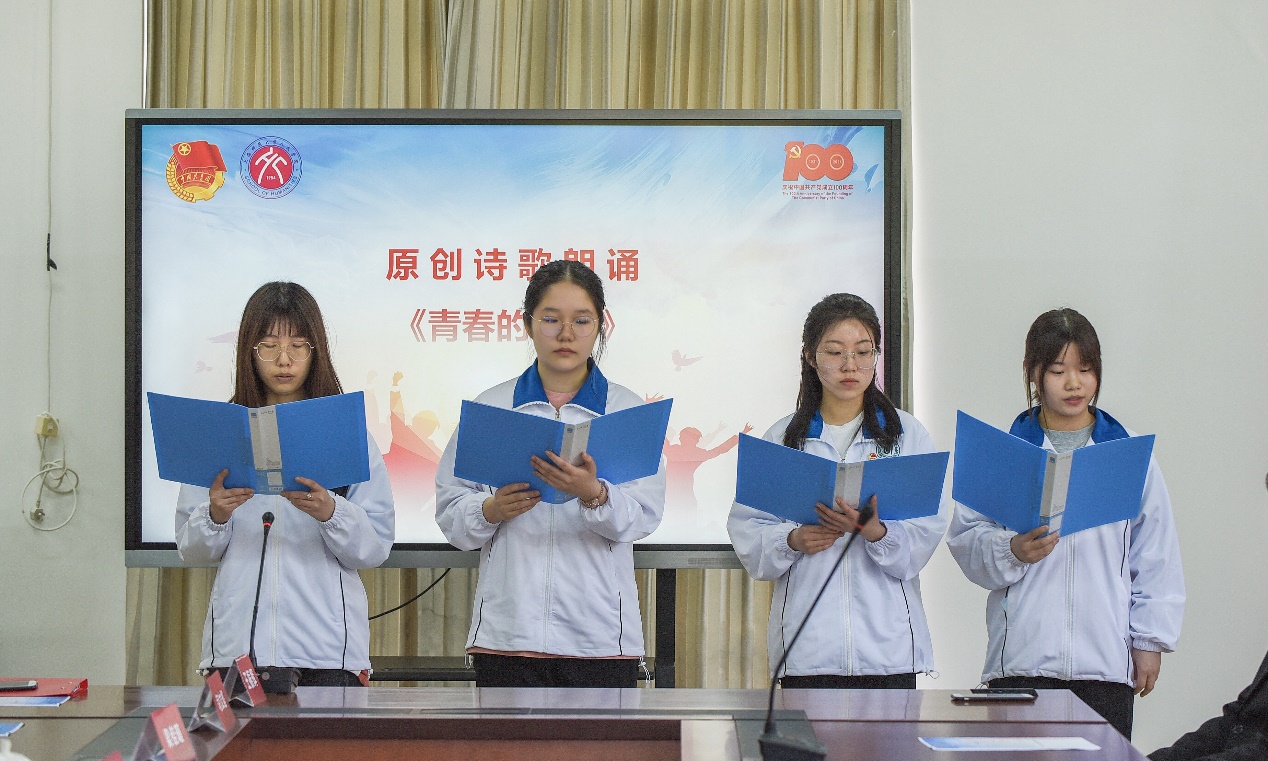“五四的光芒,是青春的火焰,燃烧在广袤天宇……”宣誓者们以铿锵有力、整齐洪亮的声音带来原创诗歌朗诵——《青春的火焰》,他们用心体会诗歌传达的感情,演绎独属于青春的那份嘹亮。