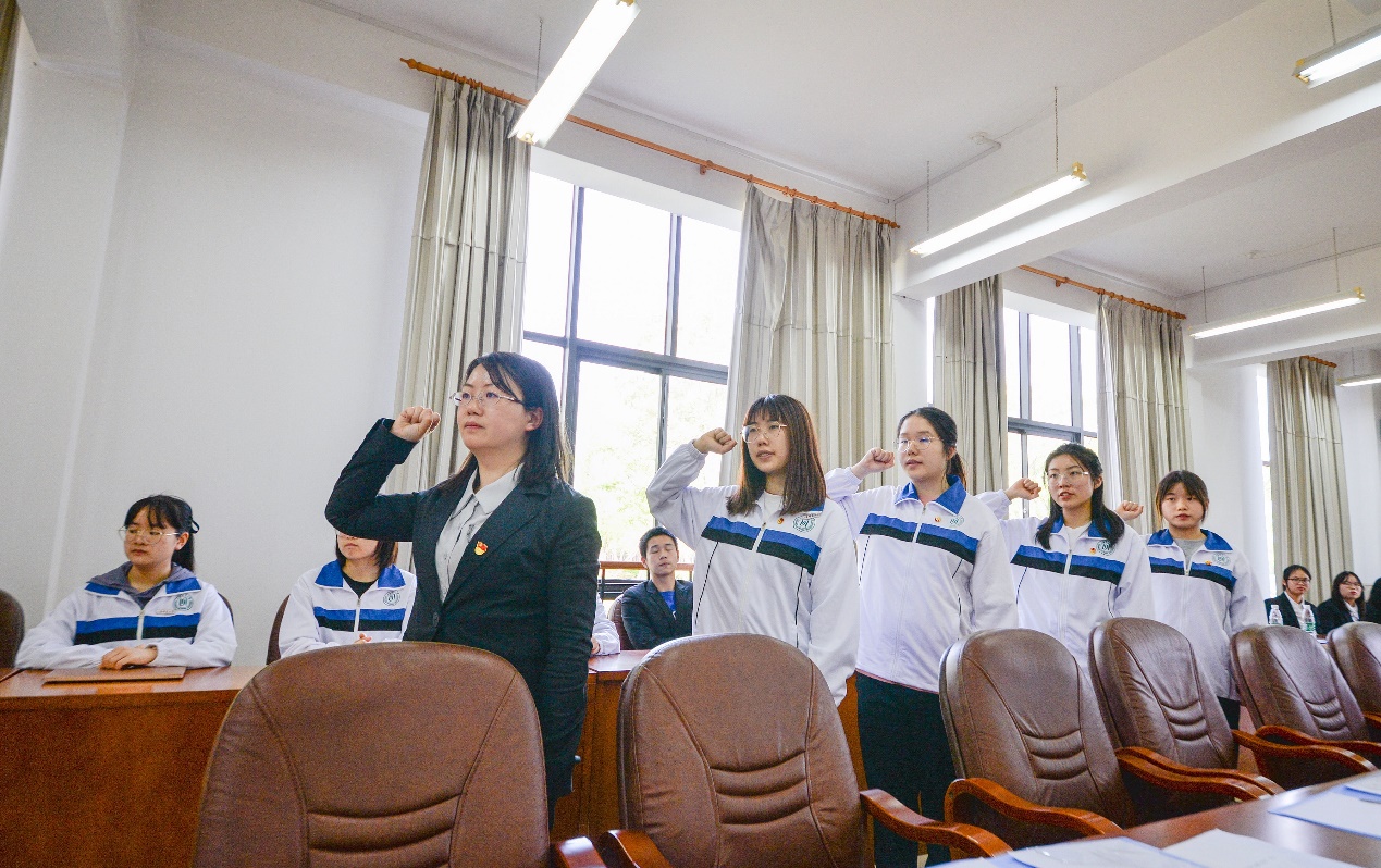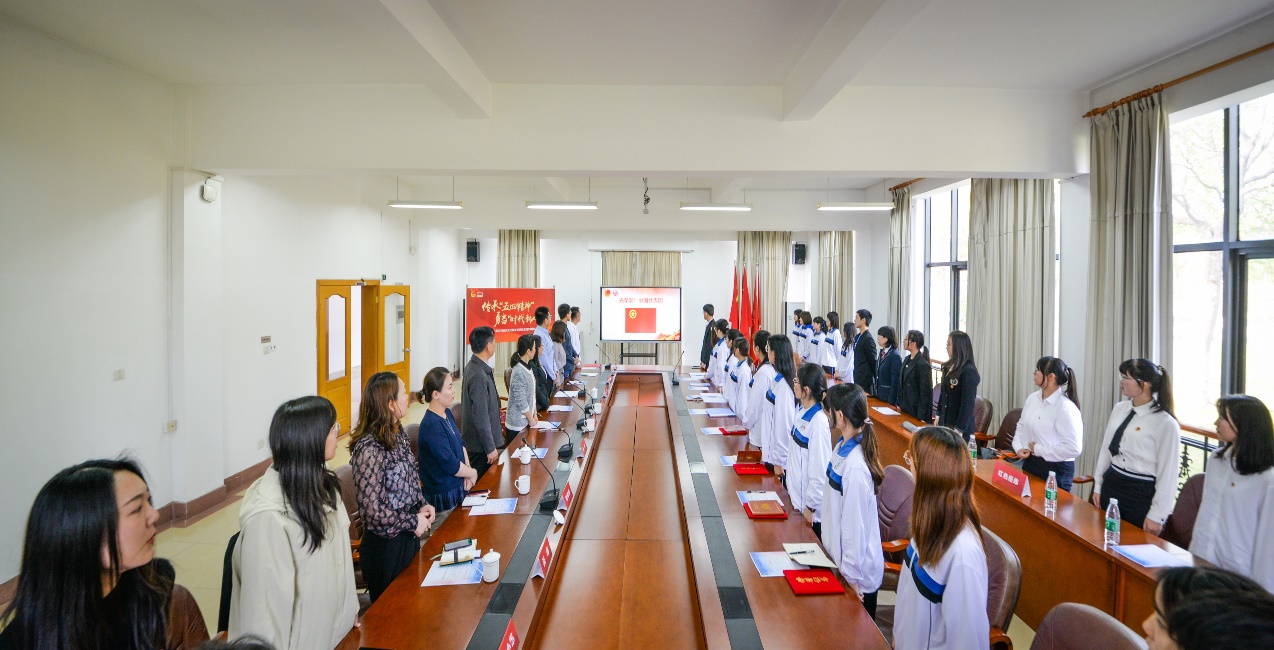 “五四”的火焰唤起了民族的觉醒,新团员入团宣誓仪式举行。面向团旗,右手握拳过肩,由公司党委副书记、副经理陈重来老师领誓,宣誓人以最洪亮的声音庄严宣誓。“我志愿加入中国共产主义青年团……为共产主义事业而奋斗!”豪壮的誓言从每一位新团员的内心深处迸发出来。