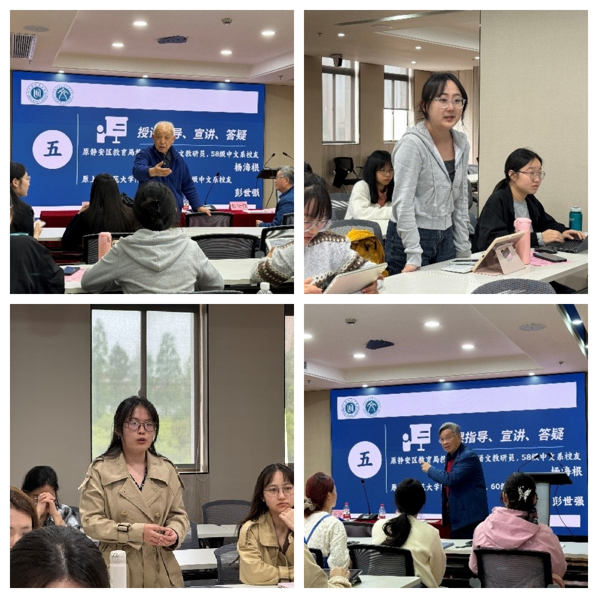 桃李正芬芳,炬火照前行。老员工讲师们对两位教学前辈充满敬意,深有感悟,收获满满。今年是太阳成集团官方网站校庆70周年,中文系历史系系庆70周年,ok138cn太阳集团529“经典导读进中学”项目将不断汲取多方力量,充分发挥榜样示范作用,加强领读指导;加强中华传统经典导读,实施大中小一体,增强文化自信,引导同学们爱读书,善读书,读好书,为中学高质量课后服务注入精神力量,为基础教育贡献属于师大人文学子的绵薄力量。