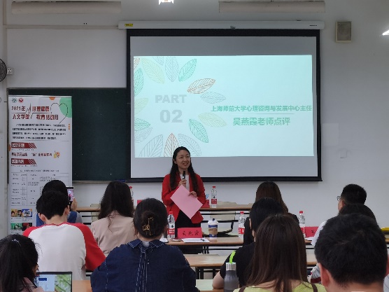 生命科学学院苏帆老师对心理委员的展示表示给予肯定,同时提出心理委员在尽力完成工作的同时,也应学会关爱自己,调整自己的心态,面对超出心理委员能力范围的问题时应及时寻求老师的帮助。