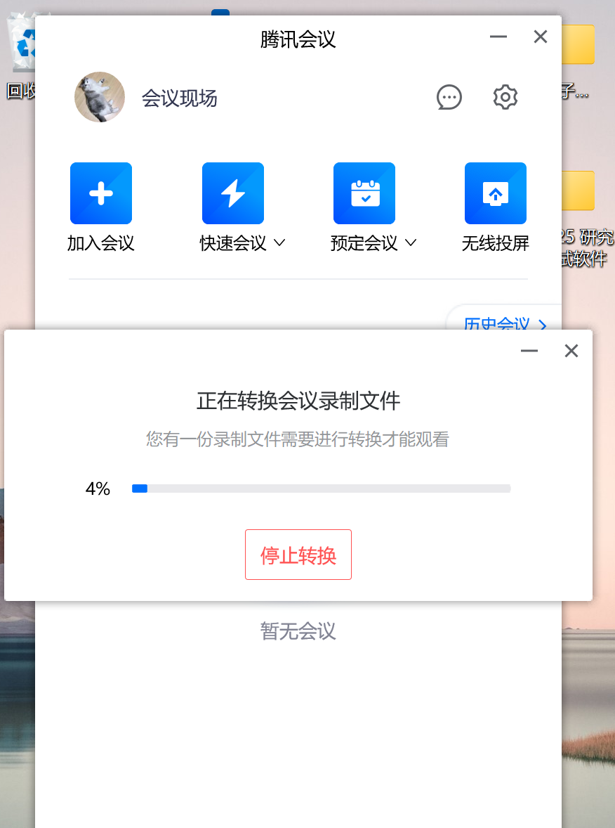 会议结束后如果不想立即转码,可以先点击“停止转换”关掉软件。