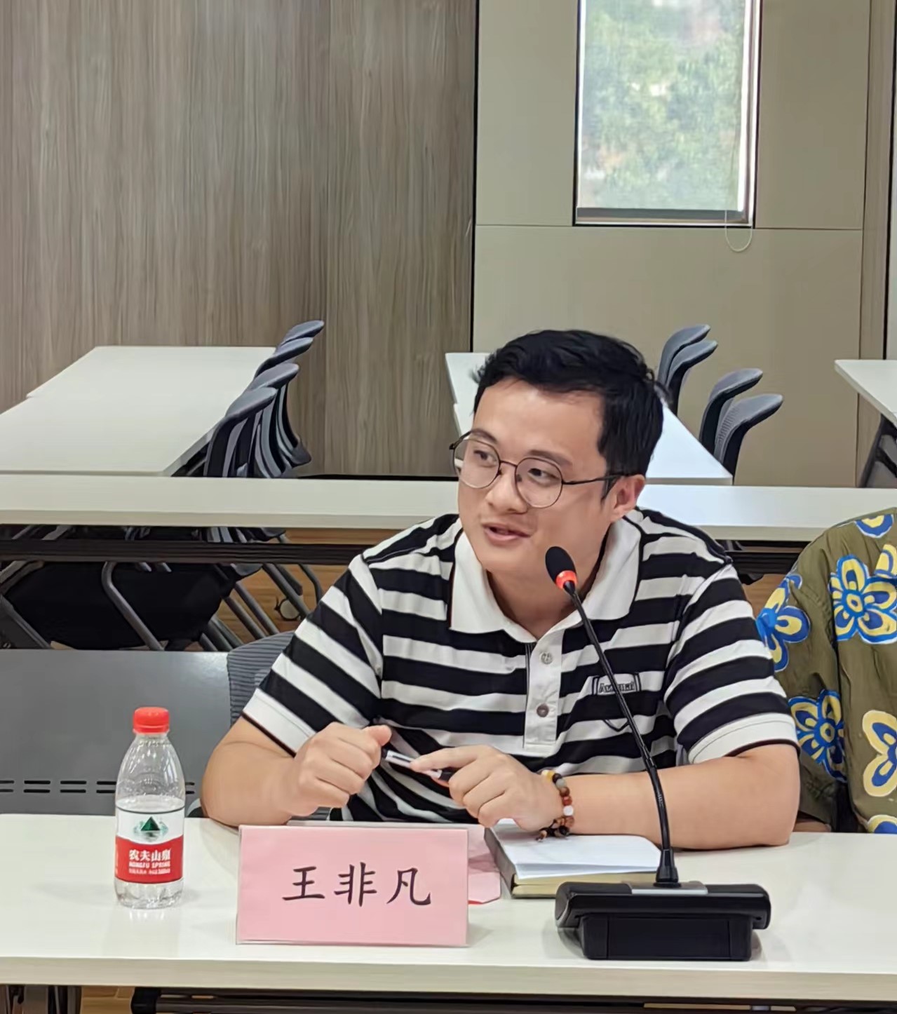 王非凡代表青年教师发言,他围绕“人正、课正、学正、路正”的主题,向在场的各位教师分享自己入职以来的感受以及在前辈教师的课堂上收获的宝贵经验,表达了自己加入人文大家庭之后全心全意教书育人、弘扬师德师风的坚定决心。