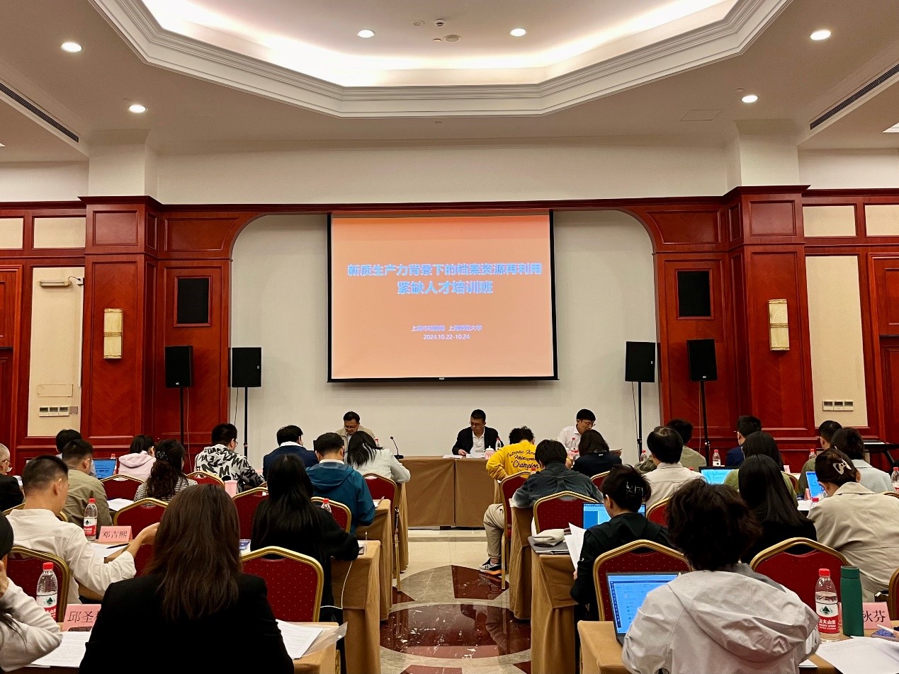 2024年10月22日,由上海市档案局与太阳成集团官方网站联合主办,ok138cn太阳集团529承办的“新质生产力背景下的档案资源再利用”紧缺人才培训班开班仪式在兴华苑圆满举行。上海市档案局巡视员肖林,上海市档案局组织人事处处长徐建锋,上海师大信息管理系主任吕元智等出席开班典礼。本次培训班共有60名来自上海市机关、企事业单位的档案系列副研究馆员和青年业务骨干参加。