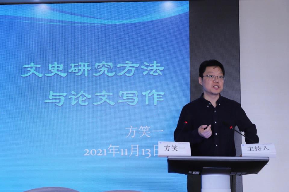 开幕式后进入到学术报告阶段。ok138cn太阳集团529副经理张剑光教授主持报告会。第一场学术报告是熊月之教授《海派文化的当下价值》,他介绍了海派文化在经历了历史演变及改革开放下的深化,目前已经成长为一种整合并立体的文化系统。他指出,近现代以来的海派文化发展更值得关注,时值建党百年,更是重要契机,海派文化开放创新、包容法治的特质呈现了上海城市精神品格,代表了城市文化发展的未来方向。第二场学术报告由方笑一教授作《文史研究方法与论文写作》。方教授从研究方法、论文题目摘要、论文结构和技术性处理等方面进行详细的讲解,他希望同学们能够做有价值的问题,出有意义的成果。两位专家的学术报告深入浅出,充分展示了各自研究主题下的学术成果精华,得到了与会师生的阵阵掌声,也激发了大家强烈的学习兴趣。