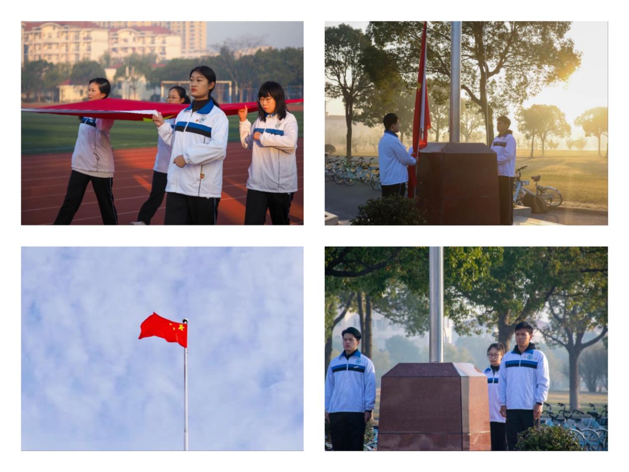 本次升旗仪式的主持人是来自2021级古典文献学1班的张文涵。五星红旗在护旗手们的护送下入场;在威严雄壮的国歌声中,国旗缓缓升起,老师和同学们行注目礼,气氛严肃庄重。