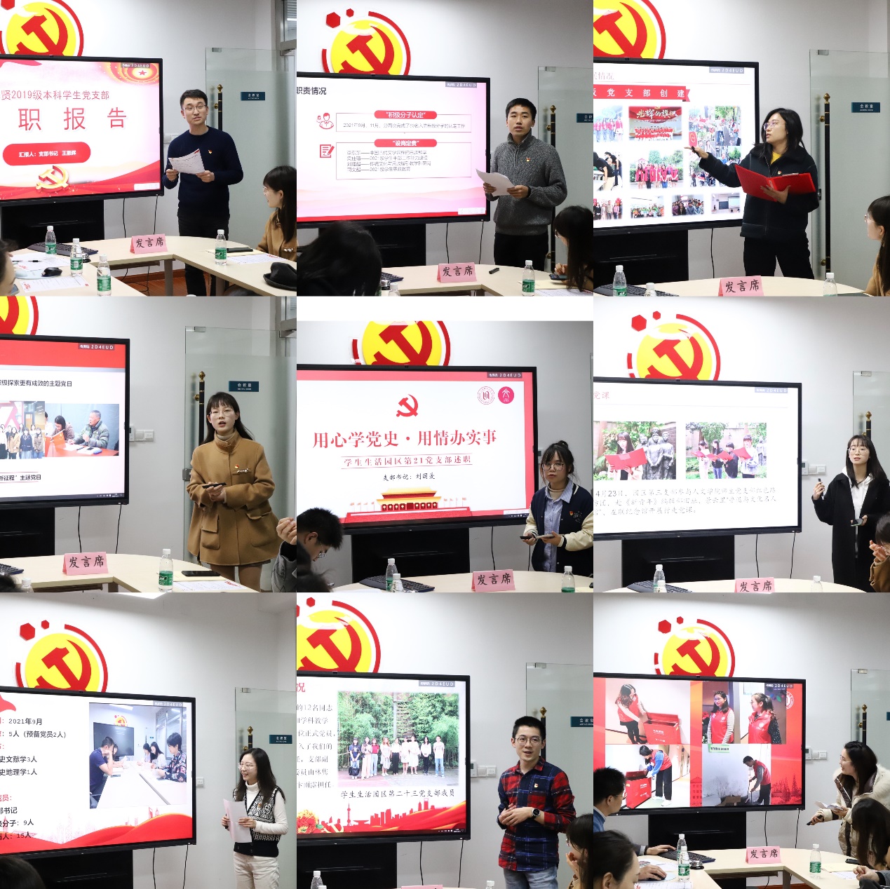 入选上海市教卫党委“党支部建设示范点”的员工生活园区第二十党支部书记刘丝云介绍了讲好红色文学精品课助推“双减”政策落地志愿服务项目的进展情况,分享了如何凝聚引领支部成员将“全心全意为人民服务”宗旨落到实处;校级“样板党支部”2018级本科员工党支部书记曹小艺汇报了本支部以打造“三型支部”为目标,努力使支部成为团结带领青年员工贯彻党的理论和路线方针政策、落实党的任务的基层战斗堡垒的具体做法;员工生活园区第二十二党支部书记魏淑娇展示了本支部结合党员专业特色,不断创新完善主题党日活动形式与内容,组织开展了参观“布尔什维克编辑部”旧址、“初心之地学党史”红色大寻访等活动;员工生活园区第三党支部书记朱星颖对毕业班支部下一年度工作进行展望,将通过学业求职经验分享、心理疏导陪伴帮扶等方式发挥支部在毕业班各项事务中的引导作用。