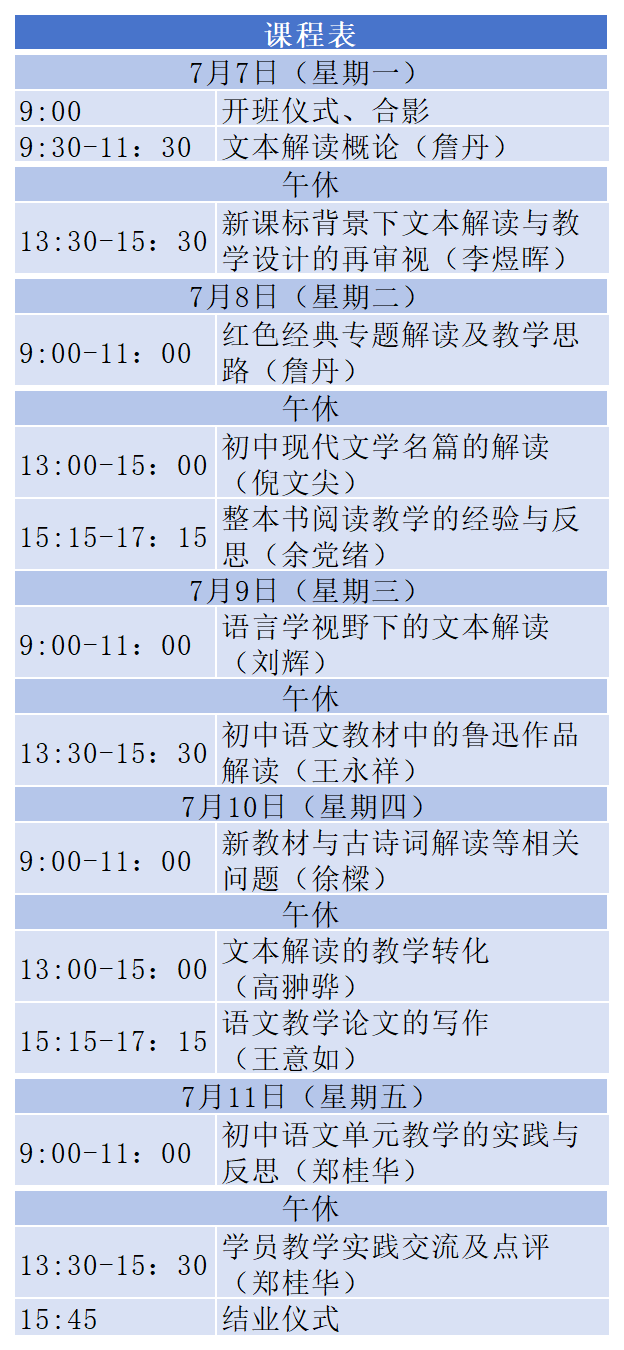 研修活动均由相关领域知名学者及全国语文教育专家主讲。团队介绍详见下方。(注:以姓氏拼音为序)