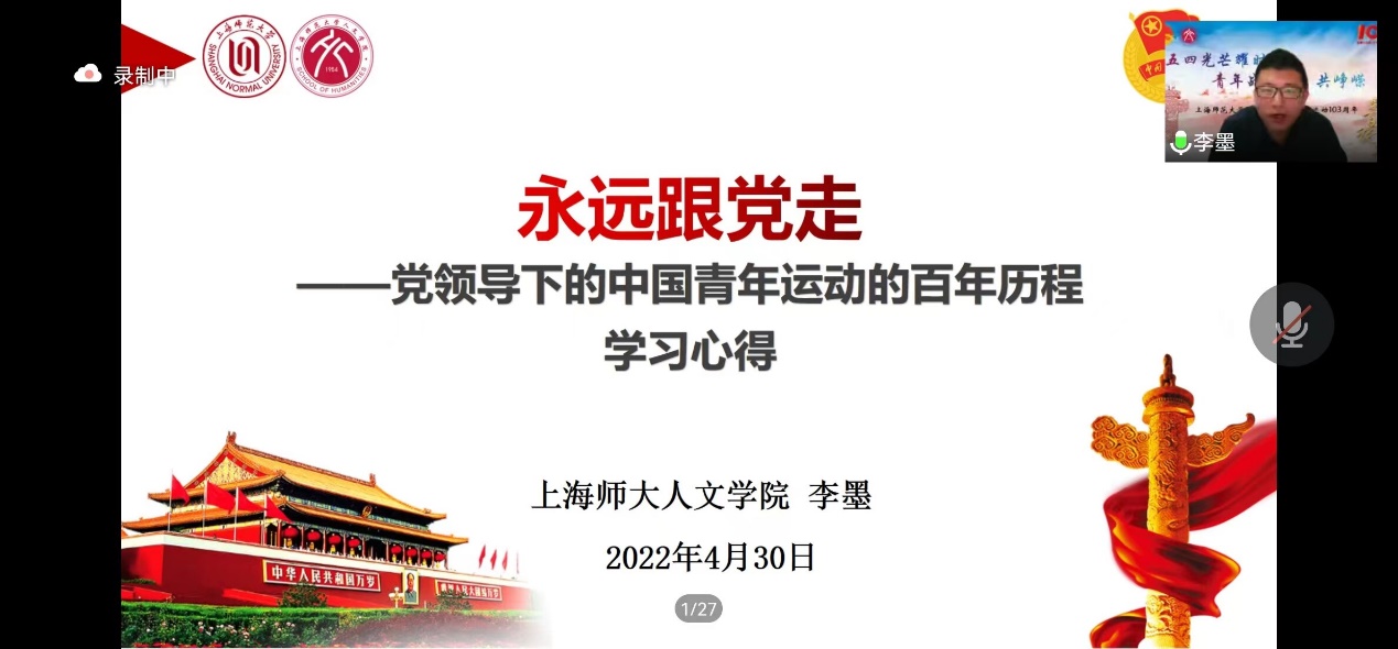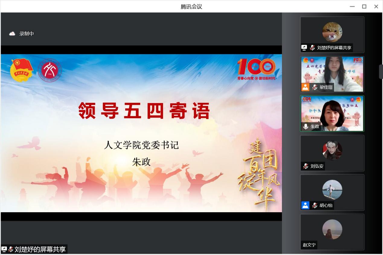 4月30日下午13:30分,ok138cn太阳集团529纪念五四运动103周年暨庆祝建团100周年主题活动在腾讯会议室隆重举行。太阳成集团官方网站团委副书记杨纯婷应邀出席,公司党委书记朱政、ok138cn太阳集团529历史系副教授姚霏、公司党委副书记、副经理陈重来以及全体专兼职辅导员、实习辅导员,学院全体本研班团骨干、入党积极分子等200余