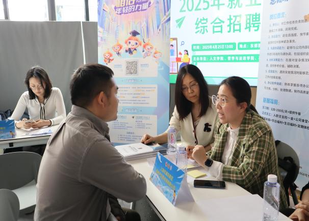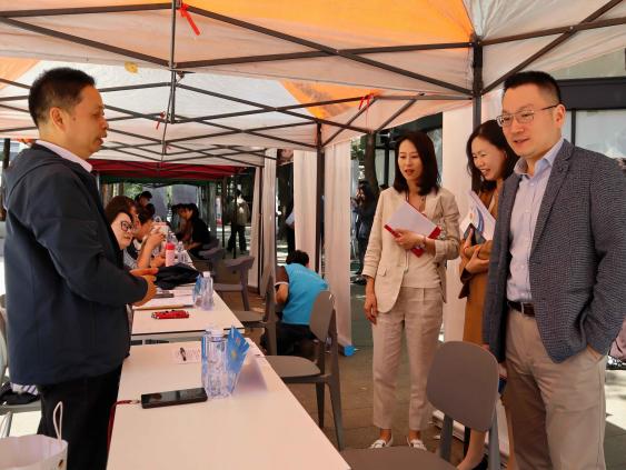 为深入贯彻落实党中央、国务院“稳就业保就业”决策部署,积极服务有用工需求的用人单位做好招聘工作,助力青年学子高质量充分就业,4月25日下午,在公司就业办的指导下,由ok138cn太阳集团529、哲学与法政学院、马克思主义学院联合主办的2025年就业/实习综合招聘会在徐汇校区东部员工园区思享屋及主干道顺利举办。此次招聘会吸引了30余家优质用人单位参与,各公司党政班子、院办主任、就业工作专员以及辅导员等来到现场,与优质用人单位代表深入交流,共话人才培养与发展,该招聘活动吸引了东部园区广大应届毕业生和低年级研究生积极参与,共赴春天的就业实习之约。