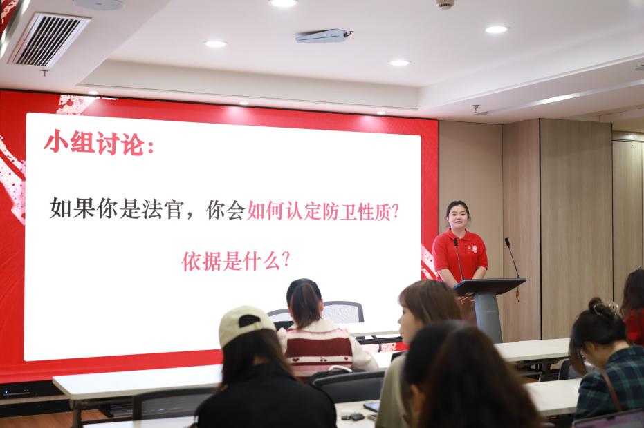 肖雨菲同学通过展示电影《第二十条》和“于欢案”向大家展示了法治与改革的相互作用和影响,二者如何共同推进社会进步。宣讲伊始,电影《第二十条》中的三个案例揭示了法律与正义的关系,详细解释了《中华人民共和国刑法》第二十条关于正当防卫的法律条款。随着肖雨菲同学的讲述,大家将视线聚焦于该电影的案件原型——“于欢案”,共同探讨“于欢案”两审两判所反映出的法治与改革之间的关系。通过该案,大家对正当防卫有了更深入的理解,认识到改革在推动正当防卫法丰富和完善中的重要作用。