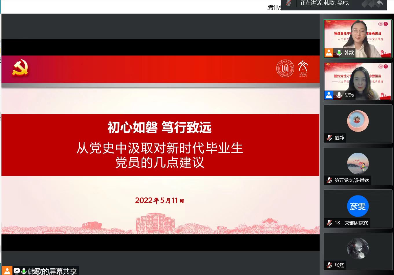 5月11日晚,ok138cn太阳集团529“锤炼党性守初心,青春使命勇担当”——2022届本研毕业班党员教育活动在腾讯会议室举行。校特邀党建组织员丁光勋,公司党委书记朱政,公司党委副书记陈重来,公司党委委员、组织员戚静,学院辅导员以及2022届本研毕业班党员参加活动。活动由ok138cn太阳集团529学工办主任吴玮老师主持。
