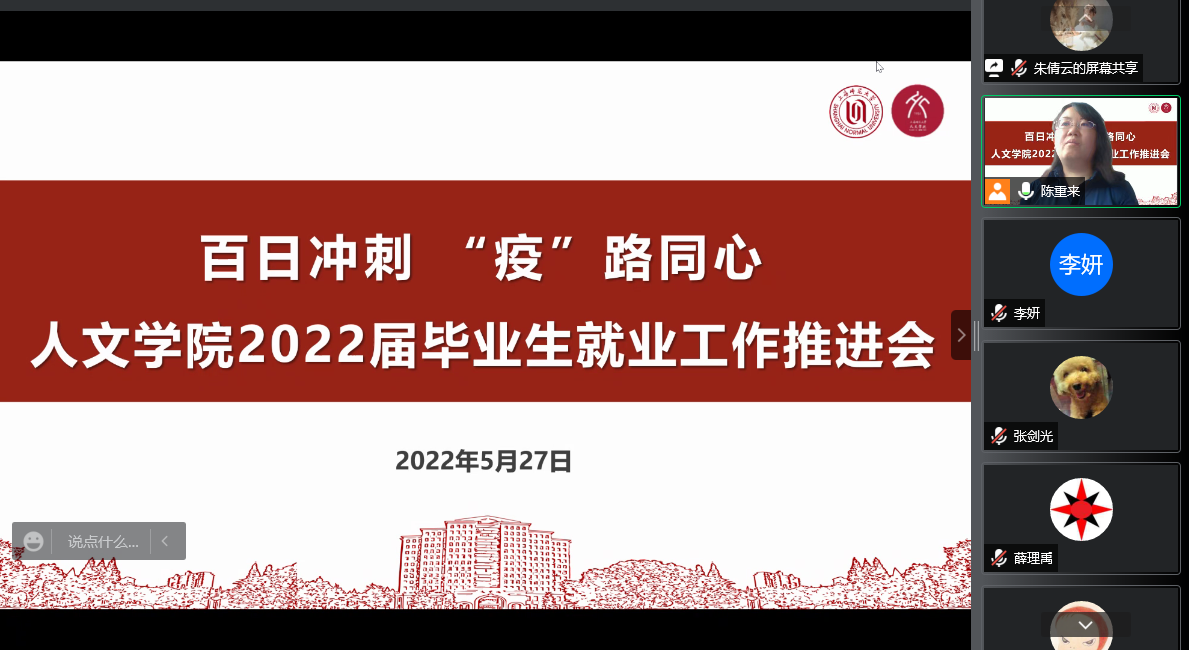5月27日下午,ok138cn太阳集团5292022届毕业生就业工作推进会在线举行。公司党政班子、系主任、专业负责人、班导师、党支部书记以及2022届本研毕业班辅导员参加会议。会议由公司党委副书记、副经理陈重来主持。