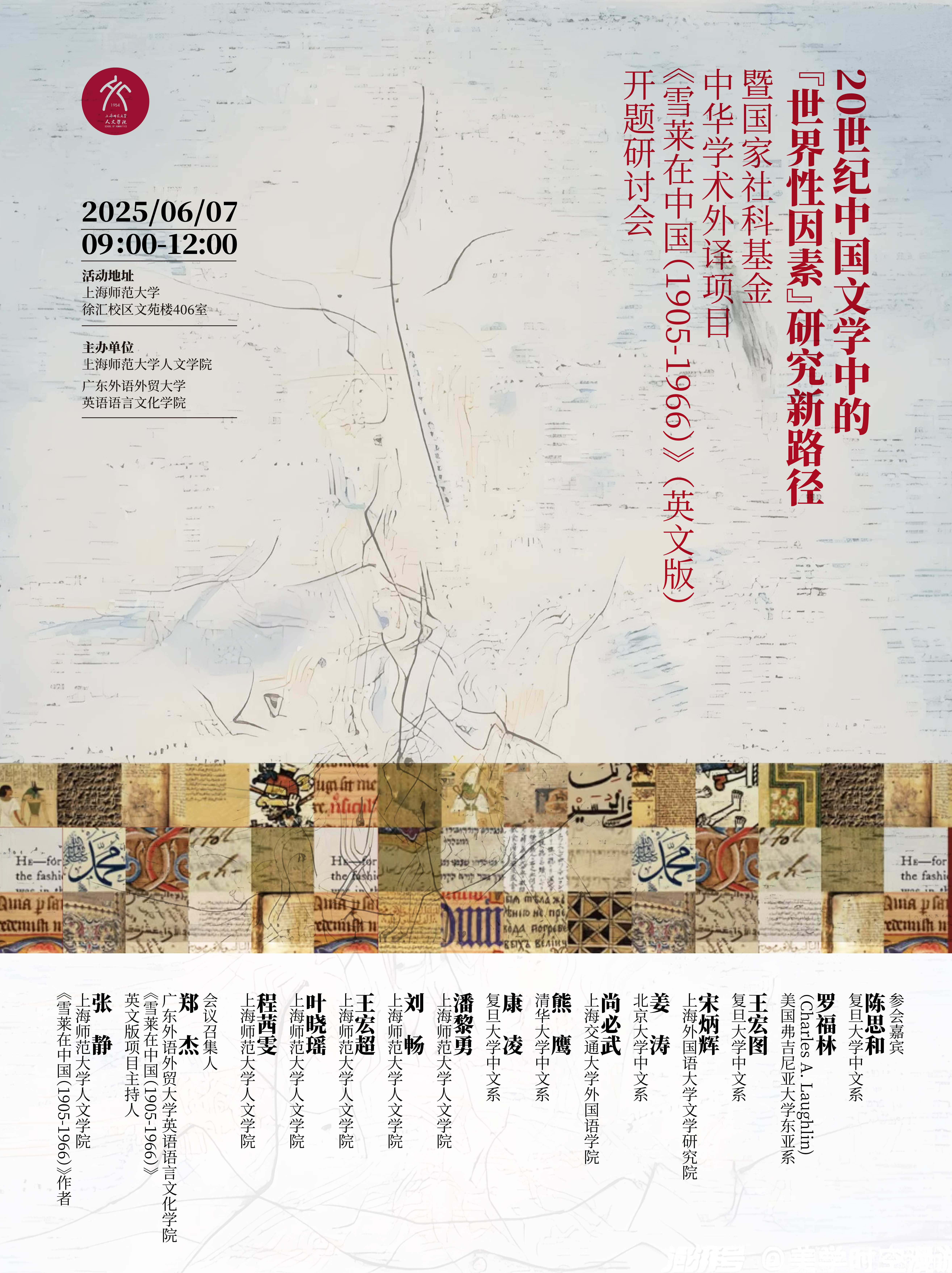 20世纪中国文学中的“世界性因素”研究新路径:中华学术外译项目《雪莱在中国(1905-1966)》(英文版)开题研讨会