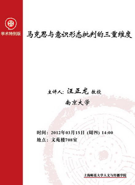 (徐汇)2012.03.15汪正龙:马克思与意识形态批判的三重维度