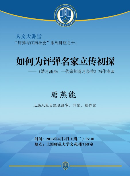2013.04.02唐燕能:如何为评弹名家立传初探——《皓月涌泉:一代宗师蒋月泉传》写作浅谈