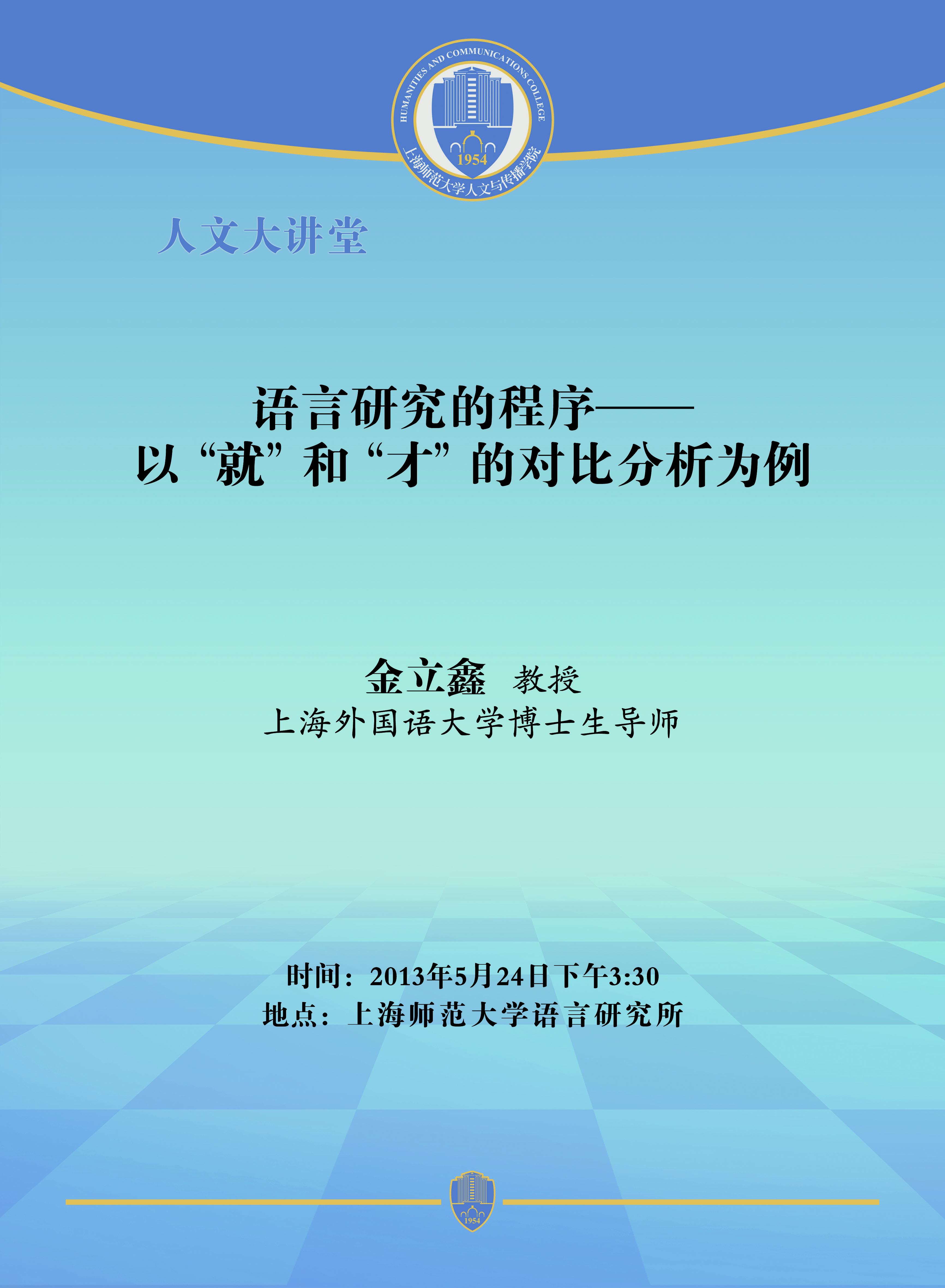 2013.05.24金立鑫:语言研究的程序——以“就”和“才”的对比分析为例