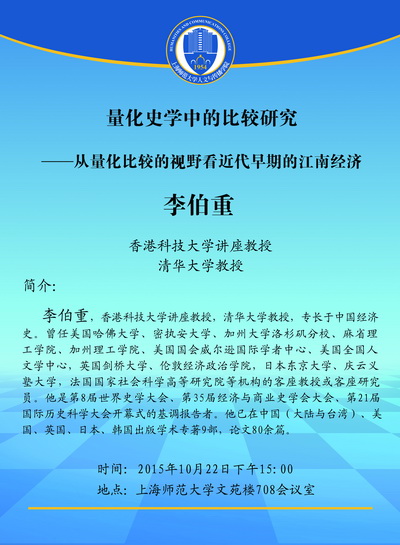 2015.10.22李伯重:量化史学中的比较研究---从量化比较的视野看近代早期的江南经济