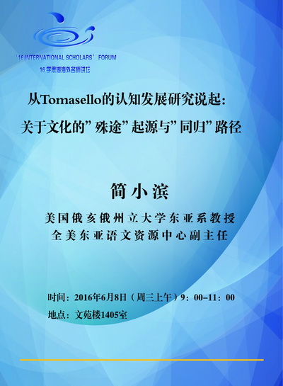2016.06.08简小滨:从Tomasello的认知发展研究说起:关于文化的”殊途”起源与”同归”路径的思考