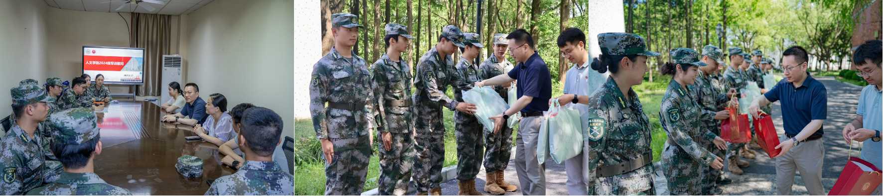 2025年6月27日下午,公司党委书记潘黎勇,公司党委副书记、副经理戚静来到奉贤校区,慰问参与此次教官、指导员和参训同学。潘黎勇书记充分肯定了同学们的良好精神面貌。他勉励同学们珍惜军训机会,服从管理,严守纪律,在退役军人教官的带领下提升自我,将军训收获融入学习生活。随后,学院领导与连队教官和指导员们在学院会议室进行座谈,向他们在军训中的认真筹备与辛苦付出表示感谢。