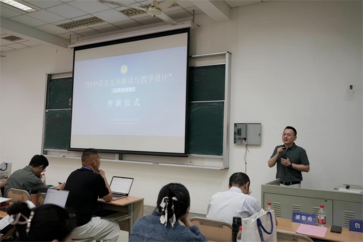 作为教师代表,詹丹教授结合自身深厚的学术研究与教学实践经验,向研修教师提出殷切期望。他首先鼓励大家珍惜本次宝贵的学习机会,积极参与课堂研讨,勇于分享教学见解与困惑。“希望各位老师在研修中真正学有所获,将所学知识内化于心、外化于行,让未来的语文课堂充满‘语文的味道’。” 詹丹教授特别强调,期待学员在交流中建立深厚友谊,形成共同切磋、携手共进的学习氛围。以此次研修为契机,逐步构建理念相通、互学互鉴的 “语文教师专业成长共同体”,通过持续性的经验共享与学术互动,推动语文公司产品质量的整体提升。