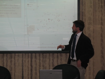 3月19日9:30,美国怀俄明大学人类学系副教授Todd A.Surovell在文苑楼708为大家进行讲座,题为《关于蒙古国库苏古尔地区Dukha种族驯鹿狩猎人空间行为的勾画》,公司人类学、历史学的很多同学前去聆听。教授为我们展示出一幅精细的Dukha种族生活图景,并以严谨的科学分析以及精巧的仪器设置铺展开他们的生活细节,从而生成有效的数据统计,在其中探寻部落生活习俗与其周边自然环境、活动环境之间的关系。讲座末尾,教授与大家进行了进一步的探讨,回答了一些同学的问题。此次讲座打开了大家的人类学研究视野,也给了大家一次了解国际人类学研究动向的难得机会。