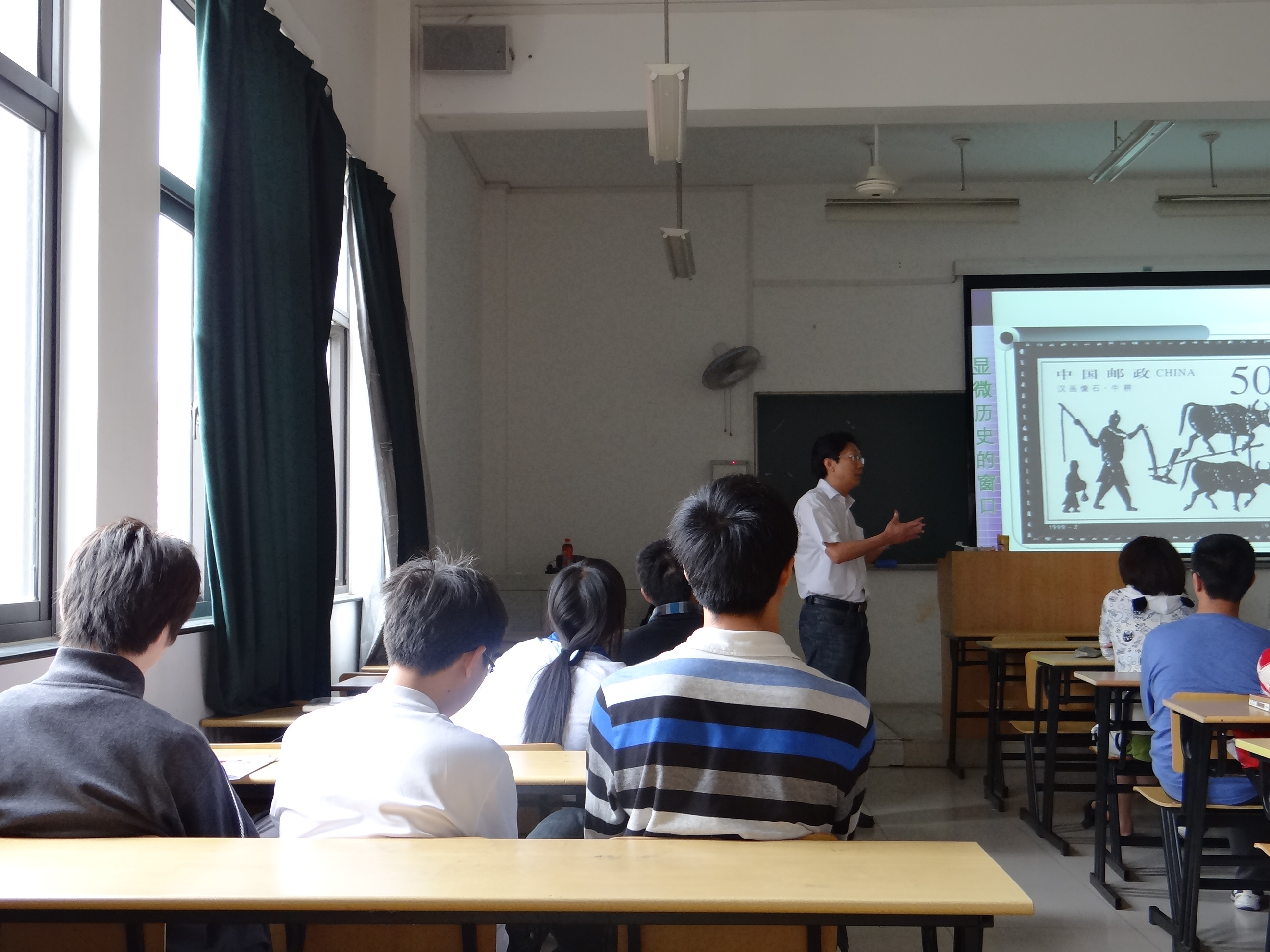 朱志浩老师为同学们分析了美国、英国和台湾等国家和地区的历史课程标准,指出教师在历史教学过程中应当注重史学思想的传授和分析历史事件的思维能力。朱老师还介绍了邮票、油画、照片和影视等艺术作品在历史教学中的价值,他最后总结到:艺术作品虽然不能作为研究历史事件的第一手材料,但能够佐证历史文献的记载,更可以真实反映创作者对历史事件的主观认识,以及创作者所处的时代风貌特征。讲座后,同学们也与朱志浩老师进行了交流,就如何做好一名历史老师提出了自己的问题,朱老师也热情地一一做了解答。