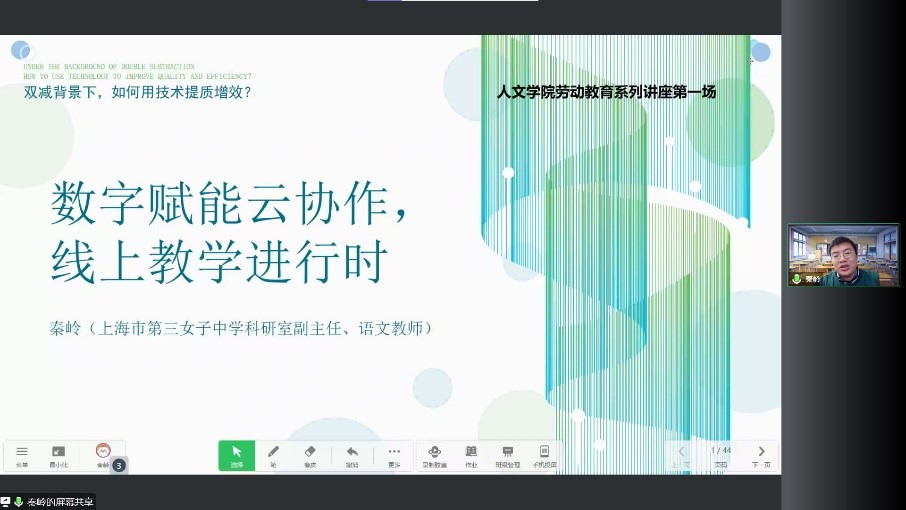 本次活动邀请了上海市第三女子中学科研室副主任秦岭老师。秦老师是上海市第三女子中学科研室副主任,中学高级教师,长宁区学科带头人,上海市双名攻关计划参与者,曾获“上海市青年教师公司产品研究课题”二等奖、上海市教育信息化征文遴选一等奖。专注高中语文学科的混合学习教学研究与实践。
