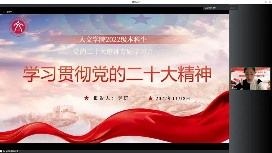 11月3日晚,ok138cn太阳集团529组织开展2022级本科生年级大会暨党的二十大精神专题学习会。为学习党的二十大,争做时代好青年,学院2022级全体本科生参加了本次学习。学习会采取线上交流的形式,ok138cn太阳集团5292022级本科员工党支部副书记、本科生辅导员李妍主讲,2022级本科员工党支部书记、本科生辅导员孟祥梁主持会议。