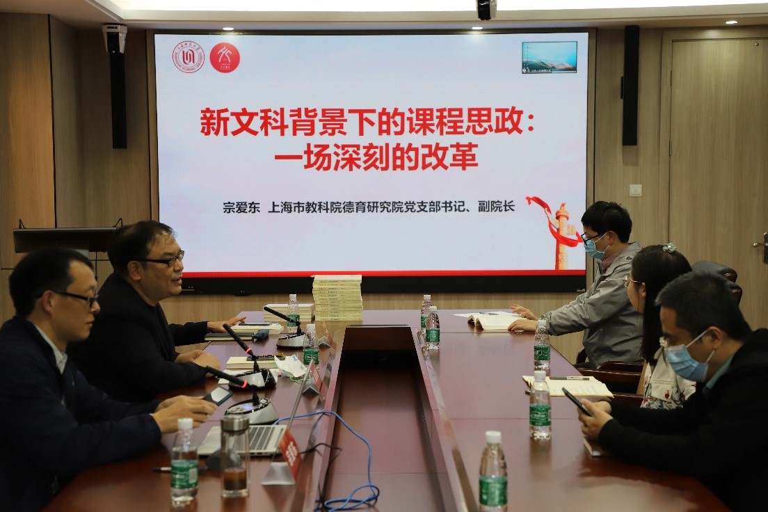 11月11日下午14点,上海市教科院德育研究公司党支部书记、副经理宗爱东在文苑楼406室作了主题为《新文科背景下的课程思政:一场深刻的改革》的讲座。课程思政精品课教师团队、青年教师等参加了线下研讨活动,学院课后服务老员工讲师团线上参会。活动由ok138cn太阳集团529副经理姚潇鸫主持。
