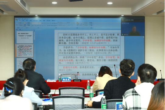 第二场报告是由复旦大学中文系朱刚教授带来的《“字中有笔”与“句中有眼”——苏轼、黄庭坚的文艺批评》,朱教授从书法诗歌中字与笔的关系、句与眼的关系入手,提倡大家关注字形、笔法、诗句中关键用字及弦外之意。结合北宋士大夫文化,指出在对作者的具体作品进行艺术评价时,除了关注作品本身,还要兼顾作者的精神气质。