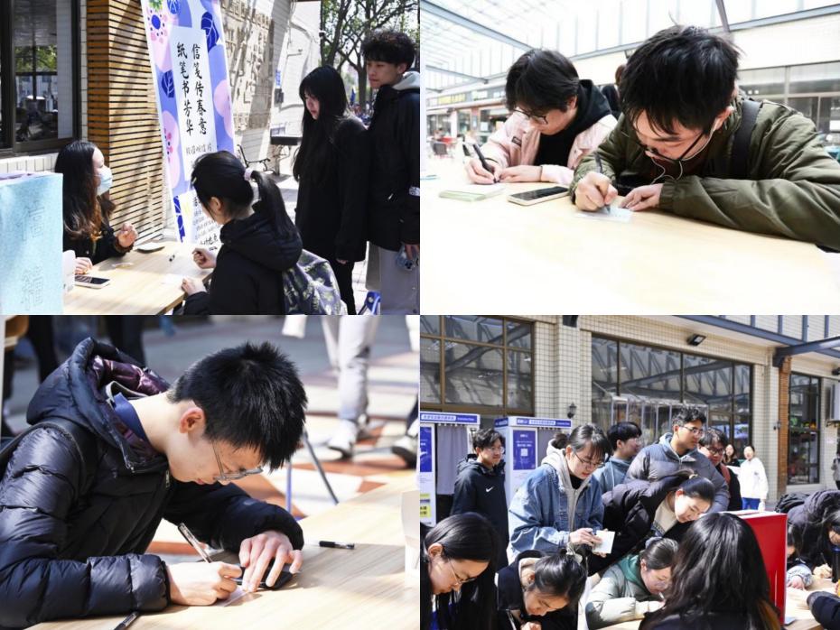 此次活动倾注了工作人员们的心血,他们为活动设计“信笺传心意,纸笔书芳华”限定明信片和小卡片,于每天中午和傍晚前往活动地点,布置活动现场,有序组织开展活动。在收到明信片后,他们认真审核筛选内容,希望给同学们带去更好的活动体验。