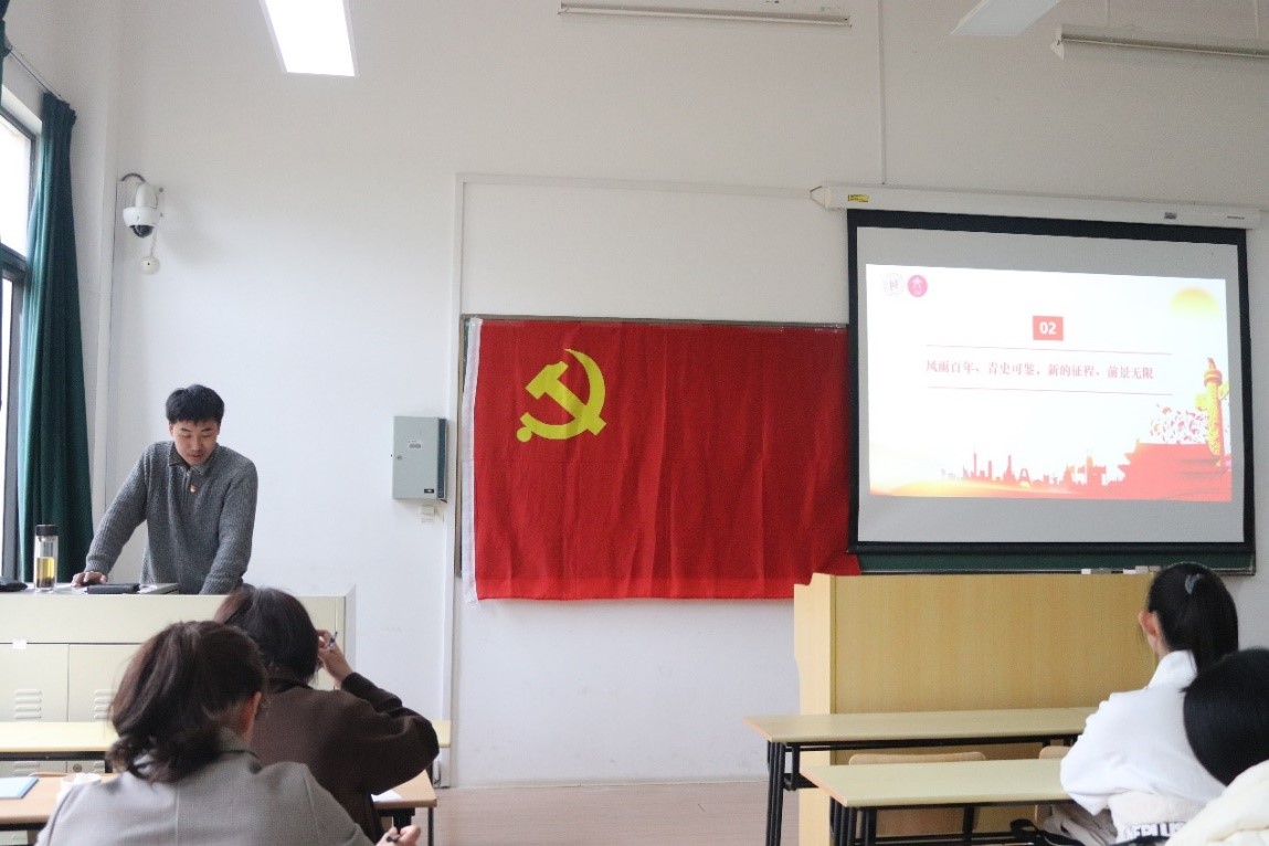 ok138cn太阳集团5292021级本科生辅导员司文超老师,以“青春恰时来,奋斗正少年”为题,向员工们阐释了伟大建党精神的深刻内涵,指出中国共产党带领中国发展的未来方向与困难挑战,呼吁生逢其时的青年学子坚定信仰、修学储能,凝聚青春力量,实现时代使命与民族使命的传承赓续,一起为中华民族的伟大复兴砥砺奋进。