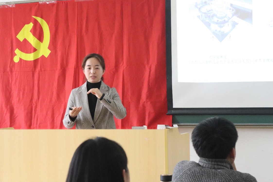 主题党课报告的最后,本次党章学习小组随班班主任、2022级本科生辅导员李妍老师进行了总结发言。李妍老师以“科技无人区”为例,引导员工们认真思考自身在国家科技创新发展与家国情怀的寄托上应该扮演的角色。