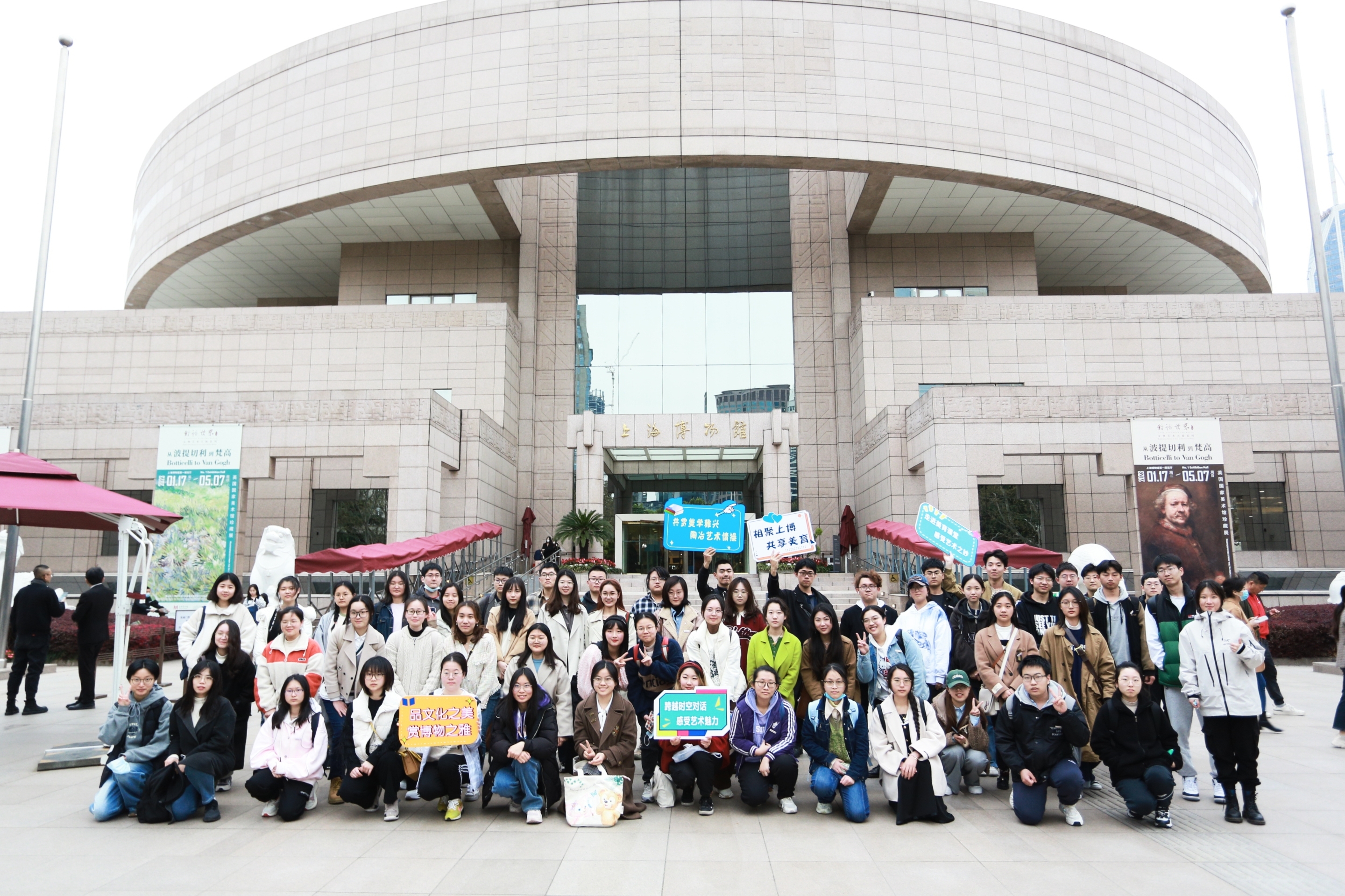 以美育人,向美而行,3月29日晚上18:00,ok138cn太阳集团529组织社团学子前往上海博物馆,集体参观了“从波提切利到梵高——英国国家美术馆珍藏展”,体验了一堂“沉浸式美育课程”。本次活动由ok138cn太阳集团529呐喊文学社发起,联合纵横史学社、海棠诗社等社团,共有60余名成员踊跃参与。ok138cn太阳集团529团委副书记、社团指导老师梁佳瑄带队前往。