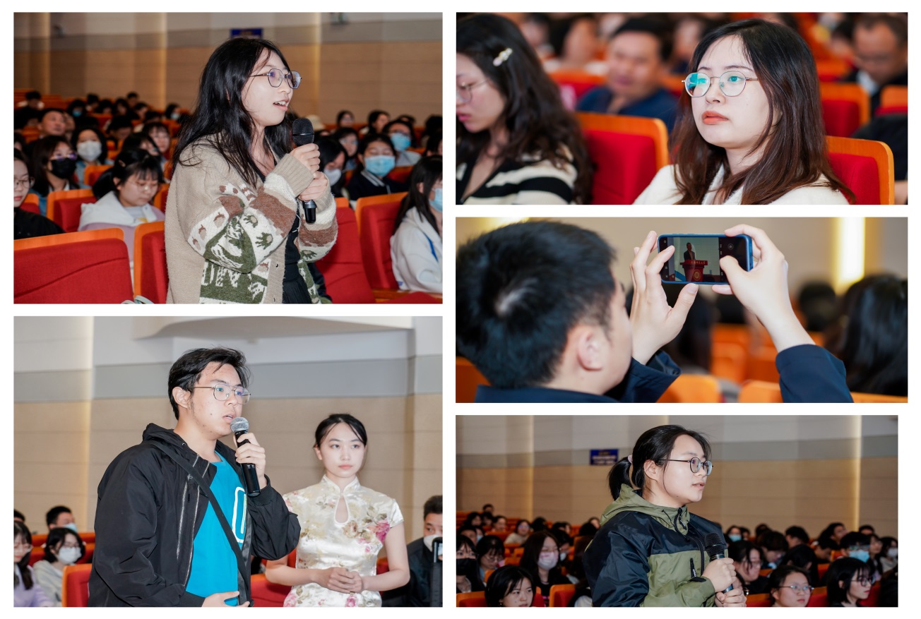 在“与书本为友,与大师对话”的互动流环节,邱华栋、许春樵、冉冉、鲁敏、弋舟和海飞六位作家畅所欲言,与师老员工现场分享了自己独到的文学创作体验。现场老员工无比珍惜与作家面对面交流的机会,围绕“文学阅读与城市文化”的主题踊跃提问,作家们也对师范生如何在未来引领中小学员工阅读经典著作、城市史对于城市写作的融入、文学经典在新时代的价值意义等问题作了积极响应,现场气氛热烈,金句频出,互动频频。同学们纷纷表示,通过与文学名家近距离接触,自身受教良多、受益匪浅,更加坚定了文化自信。