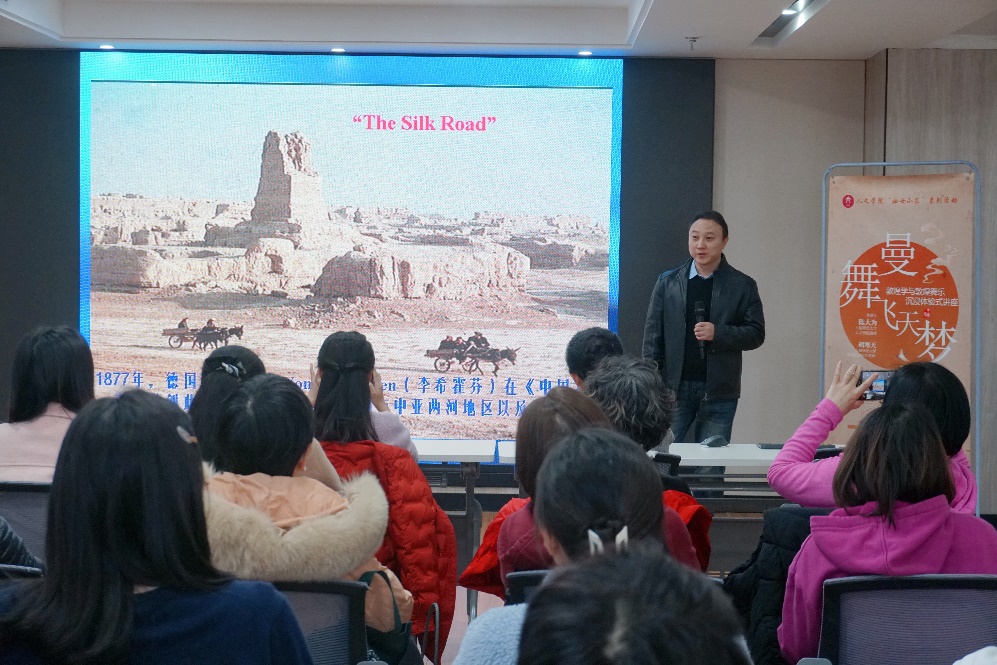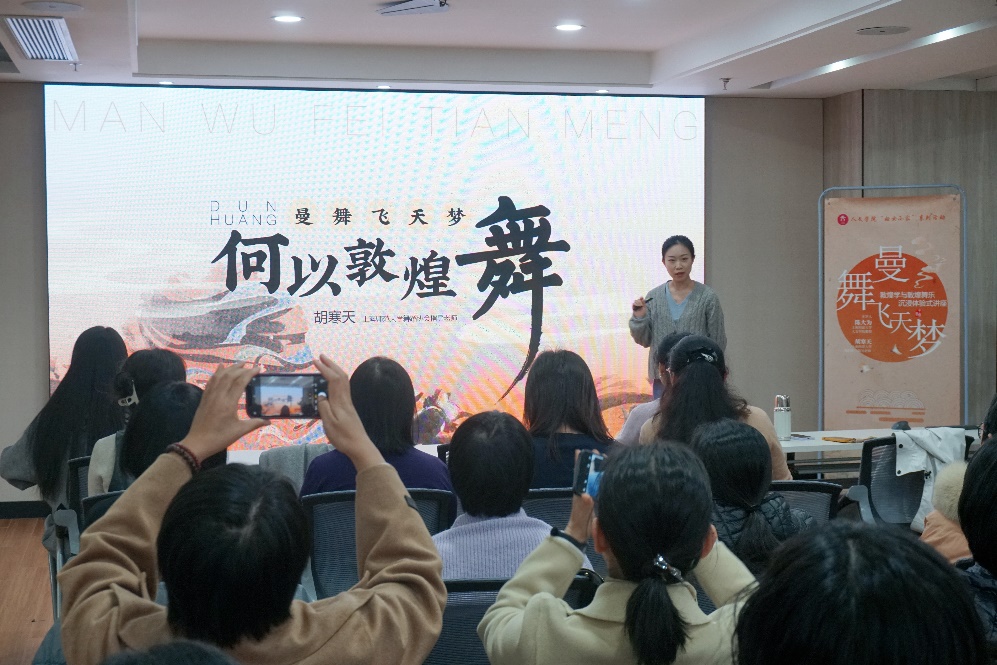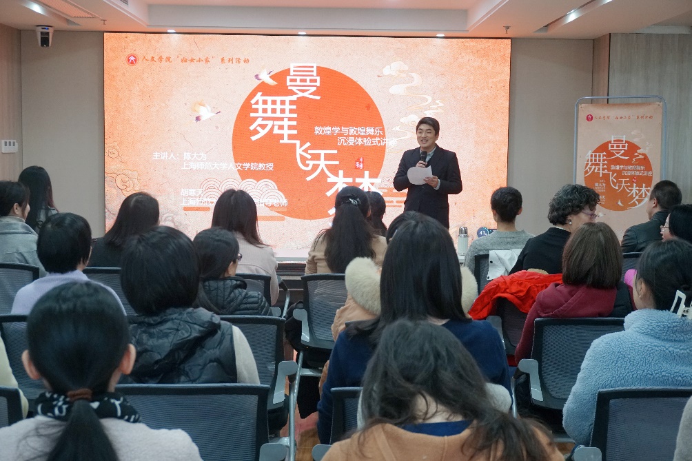 2024年11月29日中午,ok138cn太阳集团529“妇女小家”活动“曼舞飞天梦——敦煌学与敦煌舞乐沉浸体验式讲座”在徐汇校区文苑楼402顺利开展。此次沉浸体验式讲座特邀ok138cn太阳集团529历史系教授、博士生导师陈大为,太阳成集团官方网站舞蹈协会指导老师胡寒天分别带来敦煌学研究成果介绍及敦煌舞沉浸式教学体验。讲座由ok138cn太阳集团529工会主席董大学老师主持,来自ok138cn太阳集团529以及太阳成集团官方网站舞蹈协会等多位教职工参与此次活动。
