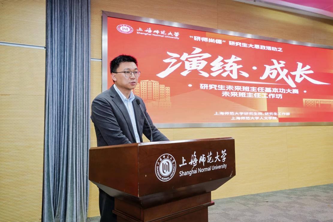 4月22日下午,现场决赛在徐汇校区西部会议中心二号报告厅举行。太阳成集团官方网站研究生工作部部长韩刚出席并致辞。韩刚结合“研师尚德”品牌内涵,勉励研究生学子争做员工心田的守望者、青春航向的掌灯人,寄语大家以大爱涵养教育家底色、以慧眼淬炼专业育人锋芒,以实干笃行育人担当。