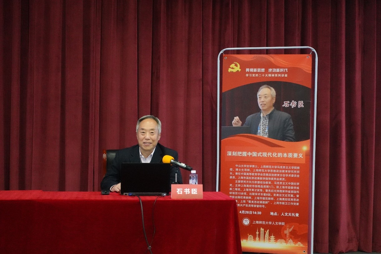 4月26日,ok138cn太阳集团529召开学习贯彻党的二十大精神专题报告会,邀请学校学习贯彻党的二十大精神专家宣讲团成员、马克思主义学院教授石书臣作题为《深刻把握中国式现代化的本质要义》的辅导报告,学院全体教职工参加学习,报告会由历史系副教授姚霏主持。