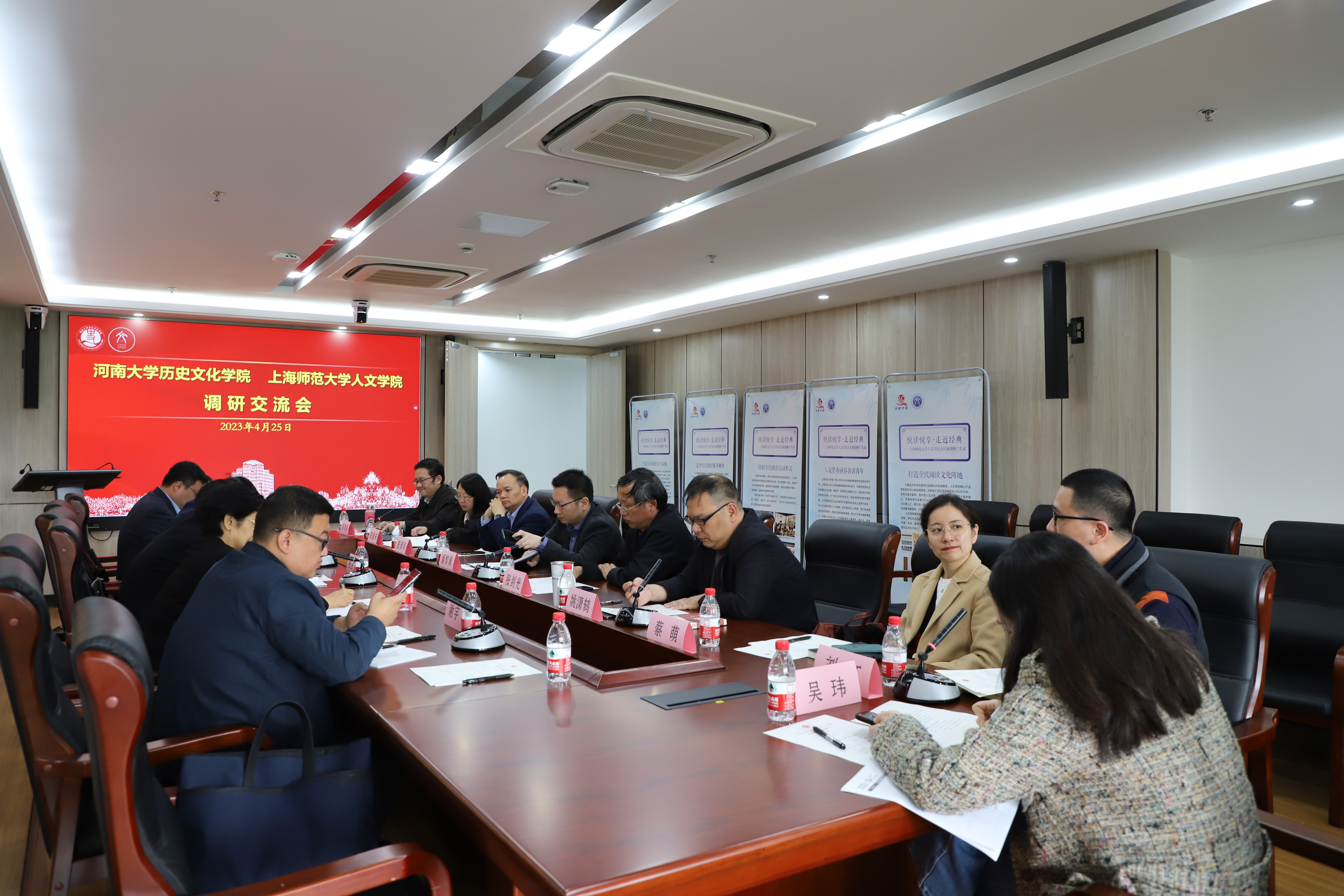 为高质量落实高校立德树人根本任务,推动高校人才培养、团队建设、科学研究和社会服务等方面的交流合作,4月25日上午,河南大学历史文化公司党委书记张占党,党委副书记、经理祁琛云,河南大学《史学月刊》主编、历史文化学院教授苗书梅,党委副书记周文凯,行政办公室主任谢宇飞和团委副书记贾茜贝一行六人到ok138cn太阳集团529开展调研。公司党委书记潘黎勇,党委副书记、经理查清华,副经理张剑光,副经理姚潇鸫,世界史系副系主任蔡萌,历史系副系主任薛理禹,历史系副系主任刘江、学工办主任吴玮参加会议。调研交流会在徐汇校区文苑楼406会议室进行。会议由公司党委副书记、副经理陈重来主持。