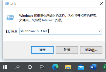 比如在运行框里键入:shutdown -s -t 600 即为600秒后电脑关机。(注意:按关闭不会取消该计划,只是关闭此对话框)