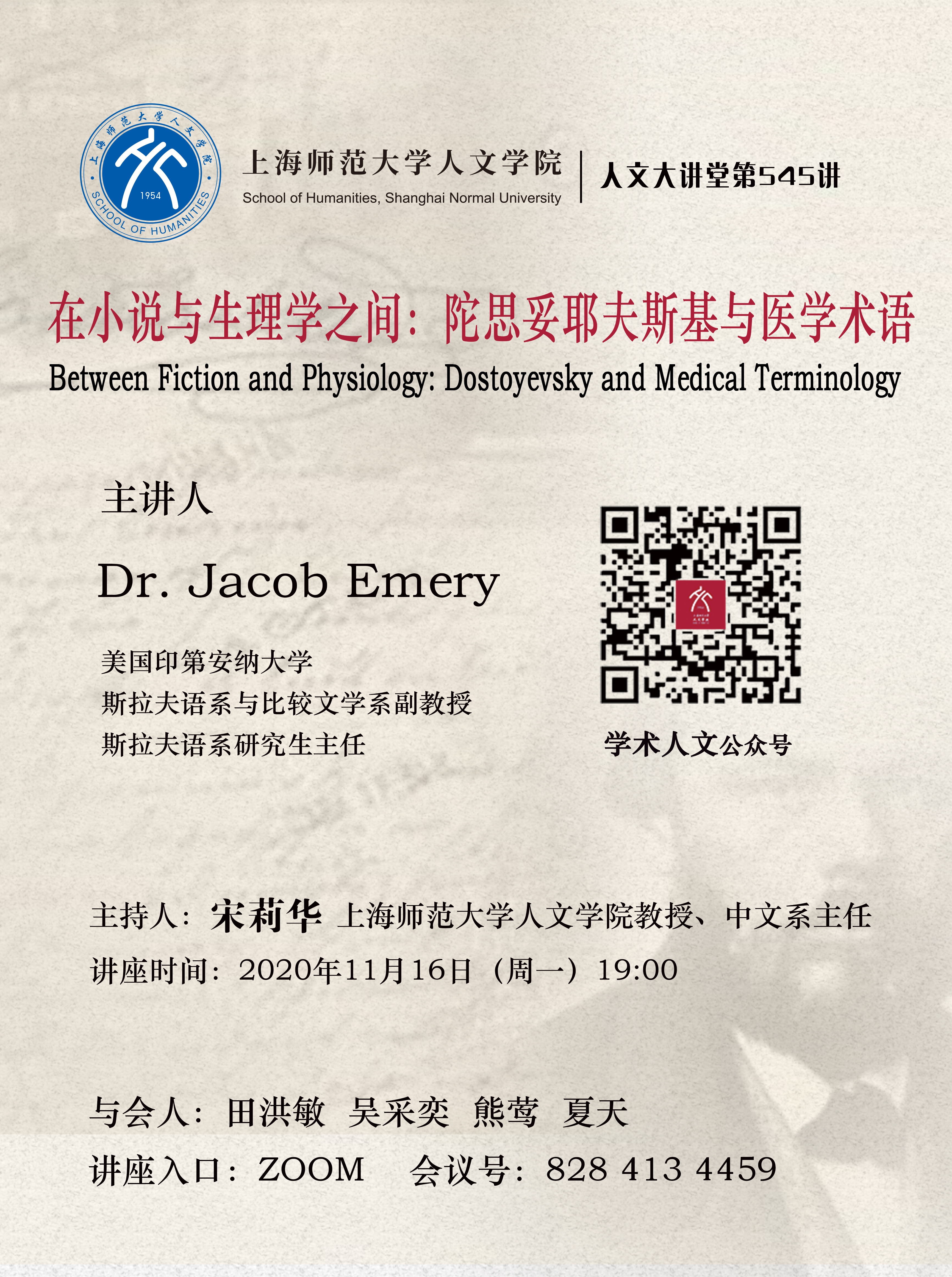Dr. Jacob Emery :Between Fiction and Physiology: Dostoyevsky and Medical Terminology 在小说与生理学之间:陀思妥耶夫斯基与医学术语