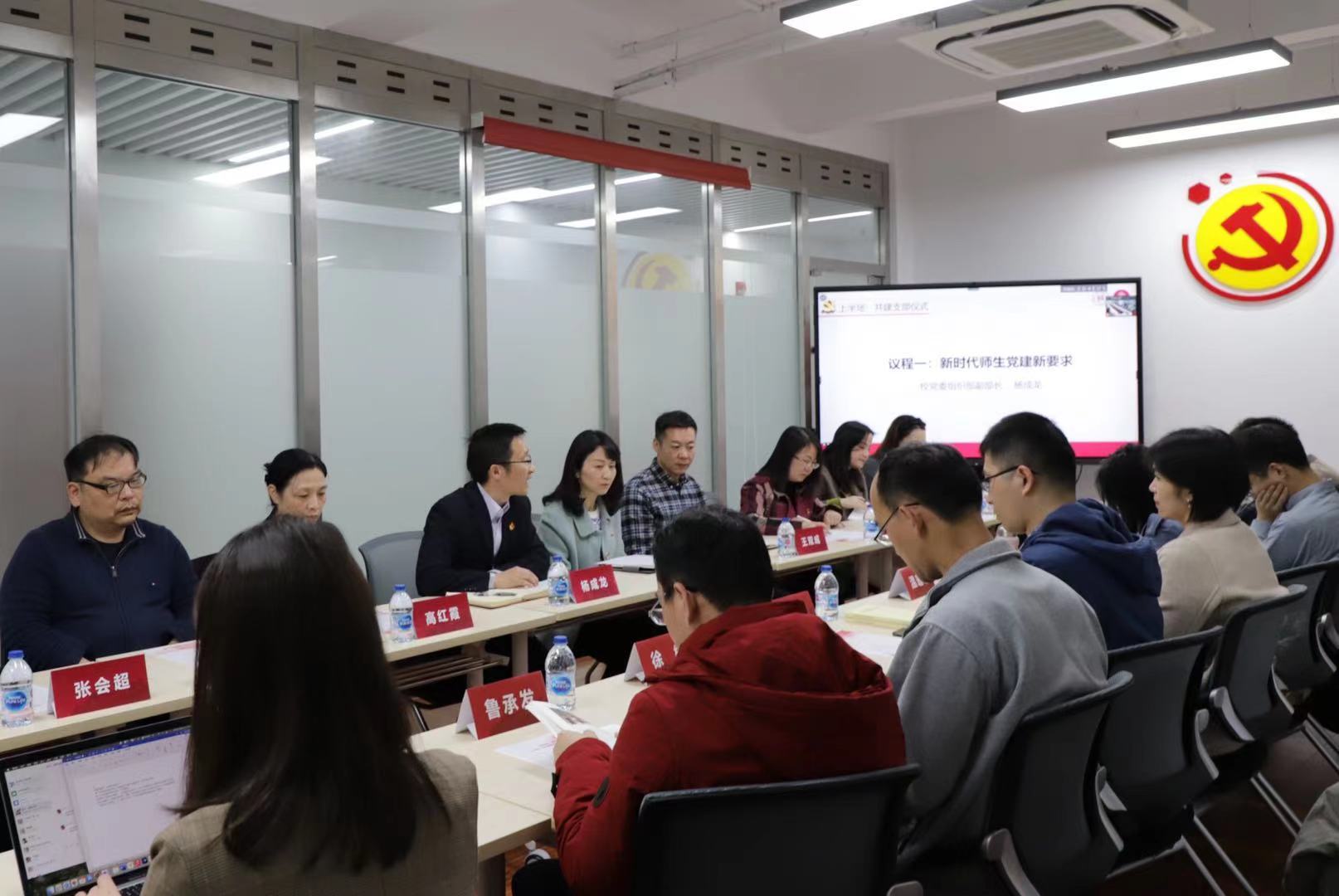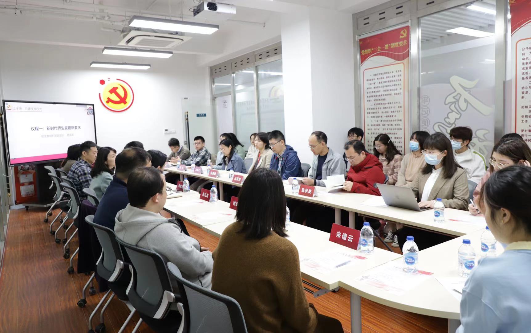活动上半场进行师生共建支部仪式。公司党委组织部副部长杨成龙介绍新时代师生党建新要求。杨老师从近日党中央发布的三个重要的党建文件出发,结合当前高公司党建工作中存在新问题,指出要把党员发展工作纳入公司党委重要工作日程,用高质量党建引领思想政治工作。他对近期学校制定的《关于党员教师参与员工党员发展工作的具体办法》等文件进行解读,希望ok138cn太阳集团529能先试先行,对党建工作积极开展探索,积累更多全员育人的良好经验,为培养高质量员工党员贡献力量。